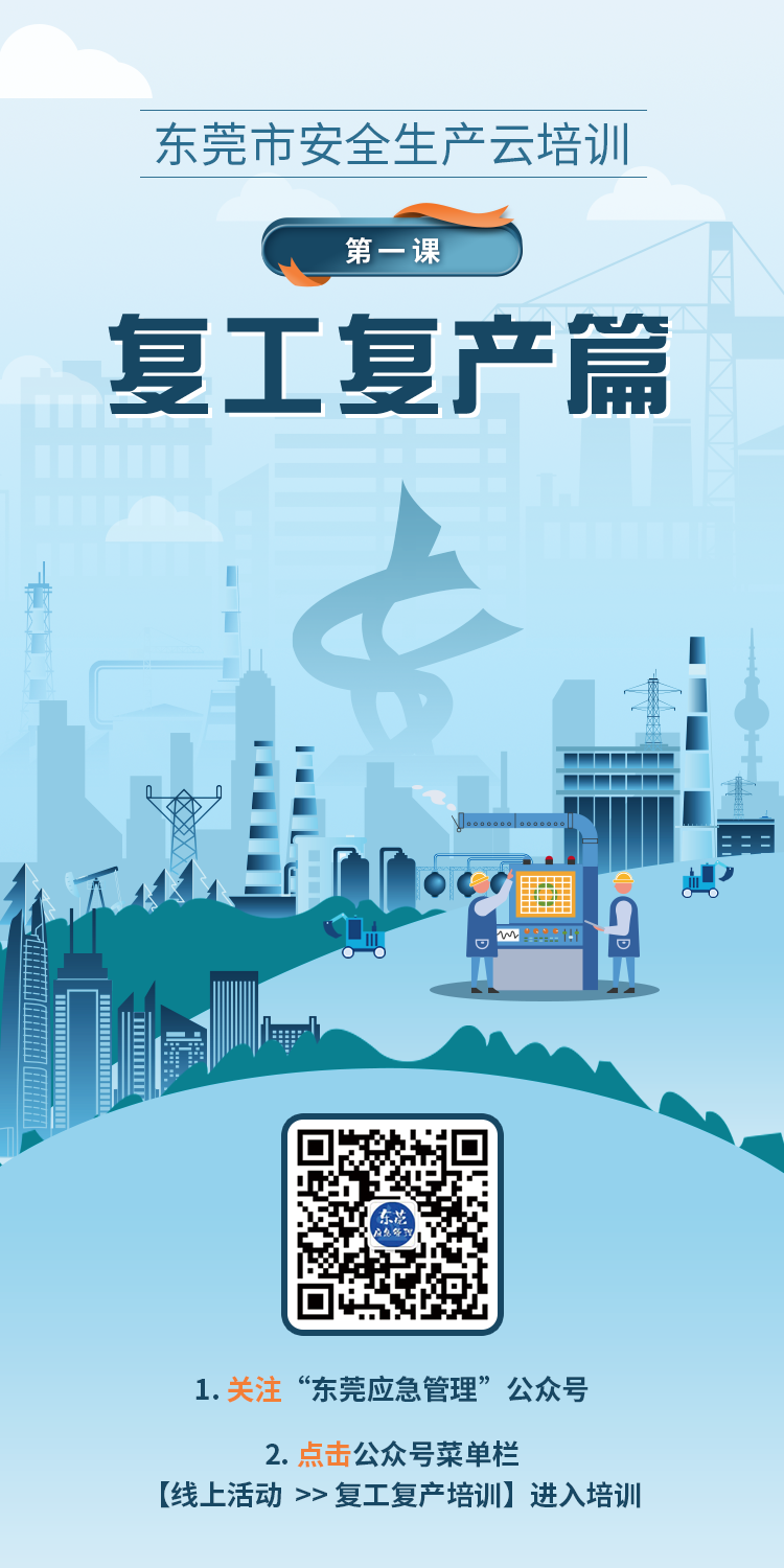 春節(jié)后復產(chǎn)復工階段,屬于各類生產(chǎn)安全事故易發(fā)高發(fā)時期,為全面貫徹落實上級關于做好當前安全生產(chǎn)工作的系列決策部署及春節(jié)假期后安全復工復產(chǎn)的工作會議精神,切實抓好節(jié)后復工復產(chǎn)各項安全防范工作,堅決防范和遏制較大及以上生產(chǎn)安全事故發(fā)生,根據(jù)《廣東省應急管理廳關于印發(fā)<廣東省應急管理廳春節(jié)后復工復產(chǎn)安全生產(chǎn)線上線下指導服務工作方案>的通知》 (粵應急辦 (2021) 11 號)、《關于做好節(jié)后復工復產(chǎn)安全防范工作的通知》(粵安辦 (2021) 21 號)等相關要求,市應急管理局決定組織開展安全生產(chǎn)云培訓“第一課”——節(jié)后復工復產(chǎn)在線培訓活動。